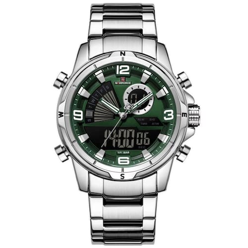 Relógio De Pulso Eletrônico Quartzo Design Luminoso à Prova D´agua Esportivo Verde Prata