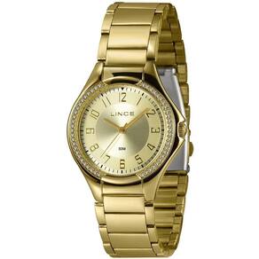 Informações do produto relógio feminino lince - lrgj157l38 c2kx relógio feminino lince - lrgj157l38 c2kx é um relógio com 38mm de largura. Possui resistência à água de 5atm. Com essa classificação o relógio é resistente às ocasiões mais comuns como chuva lavar as mãos e tomar banho de chuveiro por exemplo. Sua caixa e pulseira é em aço, seu vidro é de cristal mineral e possui mostrador dourado. Seu funcionamento é analógico. Acompanha - garantia de 12 meses do fabricante - embalagem - manual de instruções