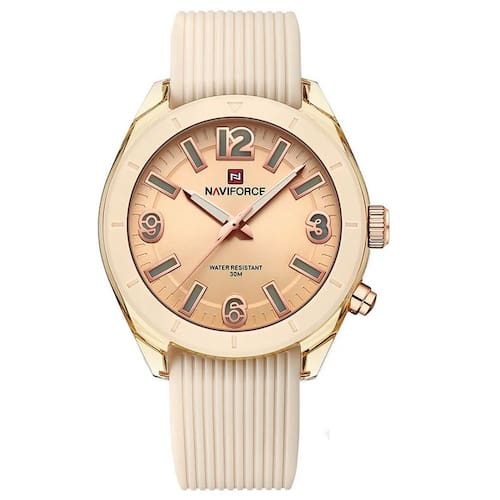 Descubra o relógio de pulso feminino que combina elegância e funcionalidade em um design irresistível. O relógio de quartzo Naviforce para senhoras é um testemunho da beleza sutil misturada com tecnologia de ponta. Com sua pulseira de silicone confortável, cada detalhe deste acessório foi pensado para oferecer um uso diário sofisticado e descomplicado, refletindo seu estilo único e moderno.