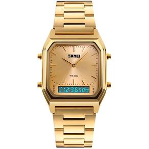 Gênero: masculino Estilo: simples, moderno, esportivo Taiwan IC Movimento Cores: ouro rosa, ouro, prata, azul, preto Material da caixa: liga de zinco Material da pulseira: aço inoxidável Tipo de fivela do mostrador: quadrado Diâmetro do mostrador: 33 mm Espessura da caixa: 11 mm Largura da pulseira: 22 mm Profundidade da pulseira: 30 ATM Funções: tela dupla, luz EL, data, cronógrafo, alarme Características: tela dupla, relógio de quartzo digital, Impermeável