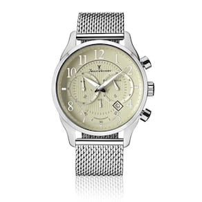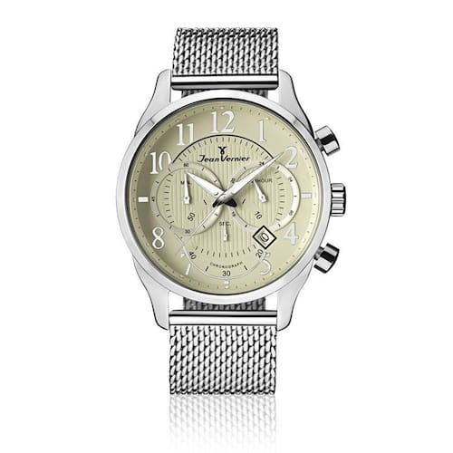A jean vernier foi fundada em 1977 na suíça. Orgulhosos de nossas raízes e levados pelo entusiasmo e pela experiência da alta relojoaria, a jean vernier tem como referência as tradicionais marcas relojoeiras suíças. Da matéria prima utilizada, aos detalhes dos mostradores, todo processo passa pelos cuidados e pela supervisão de um time apaixonado por relógios. Trabalhamos para garantir a qualidade, precisão e acabamento em cada um de nossos relógios. Características técnicas do produto: largura da caixa cm : 4,4 espessura cm : 1,3 comprimento da pulseira cm : 23 peso g : 120 Caixa de aço inoxidável 316l Pulseira de aço mesh Vidro de cristal mineral Resistente à água 5 atm Funções: analógico, cronógrafo Mostrador: bege Modelo: jean vernier Produto Referência do produto: jv00040a Todos os nossos produtos possuem: O de fábrica de 02 anos O O manual de instruções O estojo O assistência técnica em território nacional O todo relógio vendido é cuidadosamente revisado antes do envio, incluindo bateria nova. Ean: 0095330000004