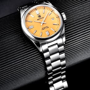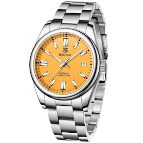 O mostrador claro e fácil de ler, combinado com marcadores de horas luminosos, garante uma excelente legibilidade mesmo em condições de pouca luz. Além disso, o design casual deste relógio o torna adequado para uso diário, seja no escritório, em um passeio pela cidade ou em uma escapadela de fim de semana.