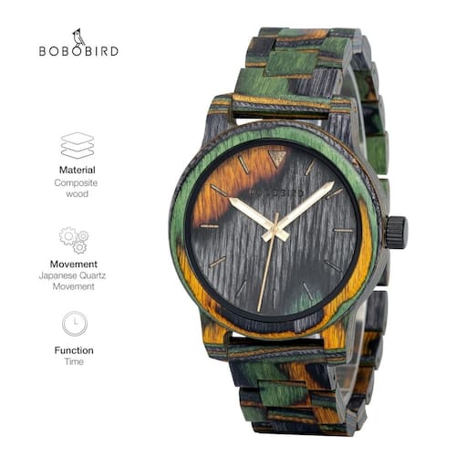 Em resumo, o BOBO BIRD GT130 é uma excelente escolha para quem busca um relógio masculino que alia um design exclusivo e natural com a funcionalidade básica de resistência à água.