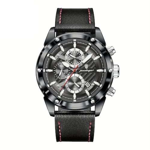 A pulseira de couro PU proporciona conforto excepcional para uso durante o dia inteiro, e sua resistência à água de 3 ATM garante proteção contra salpicos e chuva leve. Seja para reuniões de negócios ou ocasiões casuais, este relógio é um acessório indispensável para complementar qualquer look. O detalhamento do cronógrafo, o calendário e os pontos luminosos são apenas algumas das características que fazem deste relógio uma escolha inteligente e estilosa.