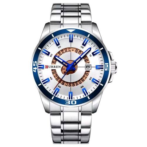 Relógio De Pulso Masculino Esportivo De Quartzo à Prova D'água Em Aço Inoxidável Branco Prata