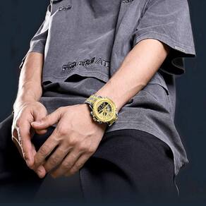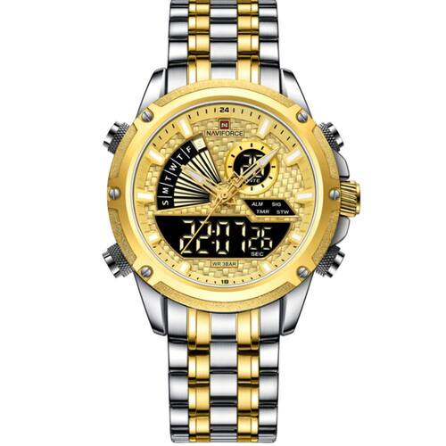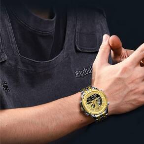 Relógio de Pulso Masculino Impermeável Dual Display Esportivo Aço Inoxidavel - Prata Dourado