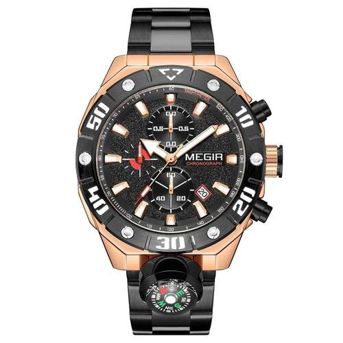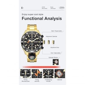 Marca: MEGIRGênero: HomensExibição: Analógico, Cronógrafo3ATM/30M resistente à água (não suporta banho, natação e mergulho)Case Material:Zinc Alloy CaseMovimento: Movimento QuartzMaterial Band: AçoProcesso diâmetro: 46mmCaso espessura: 13,6 milímetrosBanda Largura: 22mmComprimento total: 220mmPeso neto: 180gundefinedPacote incluído:- 1undefinedX MEGIRundefinedRelógios-undefinedundefinedundefinedundefinedundefinedundefinedundefinedundefinedundefinedundefinedundefined