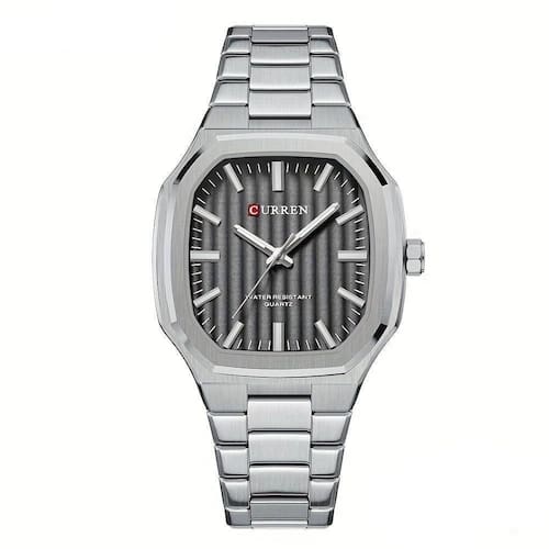 [Design de Qualidade] Com um estojo em liga de zinco e pulseira de aço inoxidável, este relógio oferece durabilidade e resistência, sem abrir mão do charme elegante que eleva qualquer visual.