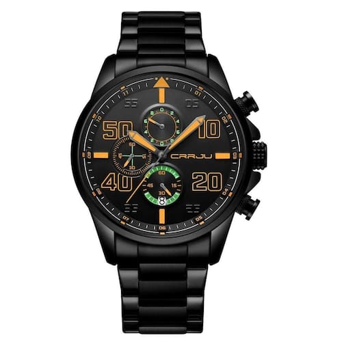 Relógio de pulso masculino com mecanismo a quartzo e design esportivo. Possui um dial grande para leitura fácil e é impermeável até 3ATM, tornando-o resistente à água para uso diário e atividades leves. Ideal para quem busca estilo e praticidade.