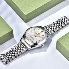 [Estilo intemporal]: O design clássico e elegante deste relógio garante que você estará sempre na moda, seja em um ambiente casual ou formal. [Resistência à aventura]: Com resistência à água de até 5 ATM, enfrenta qualquer ocasião, da rotina diária às aventuras mais inesperadas. [Construção premium]: Feito em aço inoxidável, este relógio oferece durabilidade e uma sensação premium que complementa qualquer estilo. [Funções inteligentes]: Equipado com calendário completo e recursos luminosos, este relógio é tanto funcional quanto sofisticado. [Liberdade mecânica]: Aproveite a precisão artesanal de um mecanismo automático, que combina tradição e inovação em cada segundo.
