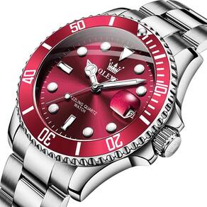 -?Design clássico e moderno?A pulseira de aço é uma boa combinação com um mostrador vermelho. A caixa do relógio é feita de aço polido. Isso dá ao design um brilho extra ao redor do pulso. O relógio masculino com pulseira de aço é o relógio versátil perfeito para uso diário e em todas as ocasiões.