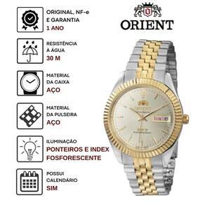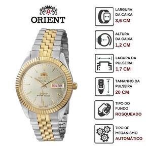 Relógio Orient Masculino Automático Dourado 469EC7FModelo: 469EC7FTipo de mostrador: AnalógicoMecanismo: AutomáticoAlimentação: Movimento do pulsoFormato da Caixa: RedondoCor da caixa: DouradoCor da pulseira: DouradoMaterial do Vidro: Cristal MineralMaterial da caixa: Aço InoxMaterial da pulseira: Aço InoxTipo de Fecho: DobrávelNível de Resistência à Água: 30 MetrosCalendário: SimCronômetro: NãoAlarme: NãoLuz noturna: Não Medidas:Diâmetro da Caixa: 3,6 cmEspessura da Caixa: 1,2 cmLargura da Pulseira: 1,7 cmTamanho da pulseira: 20 cmPeso do Relógio: 90g Conteúdo da Embalagem:Estojo da MarcaAcessórios (correspondentes a cada modelo)Manual em PortuguêsCertificado de 01 ano junto ao FabricanteNota Fiscal Eletrônica Ean: 7891529192313