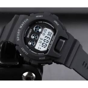 Design e Materiais: Possui corpo e pulseira de resina preta ou poliuretano PU , com caixa redonda de plástico ABS. A resistência à água é de 5 ATM, permitindo o uso para natação em águas rasas, mas não para mergulho.