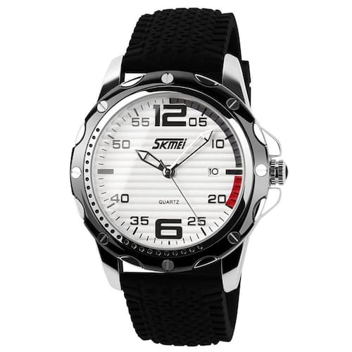 Relógio de pulso SKMEI Black Silicone Band com data para homens