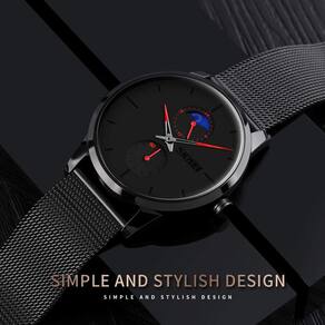 ? Design clássico de negócios casual: estojo de relógio ultrafino com uma textura única de mostrador, o design minimalista com marca de hora colorida, leva você à moda clássica e de simplicidade empresarial. Combine com qualquer roupa em qualquer ocasião