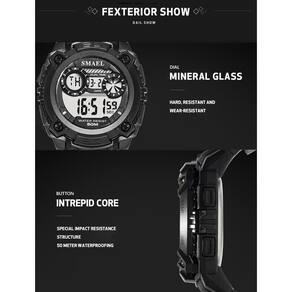 Relógio de Pulso Smael Militar Luxuoso Digital 1390 à prova d´águaMarca: SMAEL Comprimento da Pulseira: 22cm Estilo: Esporte Movimento: Duplo Profundidade de Resistência a Água: 5Bar Fecho: Fivelas Material do Invólucro: Plástico Espessura da caixa: 19mm Material: Acrílico Tipo de Item: Relógios de pulso de quartzo Material da Faixa: Plutônio Diâmetro Dial: 48mm Modelo Número: SL-1390 Largura de banda: 22mm Calendário CompletoCaracterística: Resistente a Choques Cronômetro Display de LED Data Automática À Prova D'Água Cronógrafo Luz Negra Múltiplos Fusos Horários Natação Alarme Luminosa