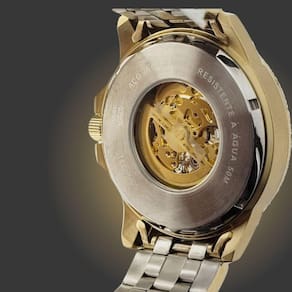 Relógio Technos Masculino Automático Esqueleto 8N24AMarca: TechnosModelo: 8N24ALinha/Coleção: AutomáticoTipo de mostrador: Mostrador vazado que permite visualização do mecanismoMecanismo: Máquina Japonesa automático mecânico 21 jewelsCoroa simples padrão de pressão sem roscaAlimentação: Movimento do PulsoFormato da Caixa: RedondoMaterial da caixa: Aço InoxidávelMaterial da pulseira: Aço InoxidávelTipo de Fecho: Dobrável com travaResistência à Água: 50 metrosCalendário: NãoLuz noturna: Ponteiros FosforescenteMedidas:Tamanho da caixa: 4,7 cmEspessura da caixa: 1,3 cmLargura da pulseira: 2,4 cmTamanho da Pulseira: 21 cmPeso do relógio: 165gConteúdo da Embalagem:Relógio Estojo da MarcaManual em PortuguêsCertificado de 01 ano junto ao FabricanteNota Fiscal Eletrônica Ean: 7891530653162