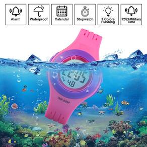 Kid Watch 50M Waterproof Sport LED Alarm Stopwatch Digital Child Quartz Watch for Boy Girl Rose Purple