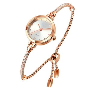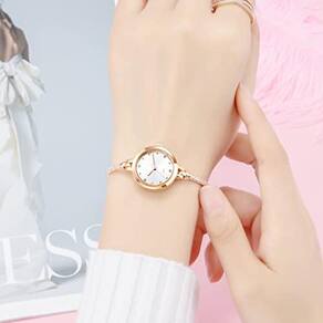 Relógio feminino de quartzo analógico TOOCAT Relógios em ouro rosa brilhante com pulseira de diamantes brilhantes Relógio de pulso impermeável de quartzo para meninas e estudantes (prata)
