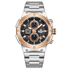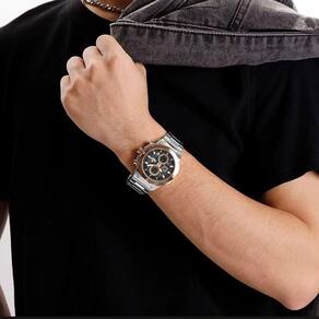 Especificações: [Resistência:] Feito para aguentar as mais diversas aventuras, este relógio é à prova d'água até 3Bar, ideal para entusiastas de esportes aquáticos e ambientes úmidos. [Design robusto:] Equipado com material resistente a choques e vidro Hardlex, protege contra arranhões, mantendo seu visual sempre impecável. [Funcionalidade aprimorada:] Oferece um calendário completo e função de alarme, garantindo que você nunca perca um compromisso importante. [Elegância e conforto:] Pulseira de aço inoxidável com largura entre 20 e 24 mm, oferece um ajuste confortável e seguro, complementando seu estilo com um toque de luxo. [Precisão:] Com movimento de quartzo confiável, proporciona uma cronometragem precisa, indispensável para aqueles que vivem uma vida dinâmica.