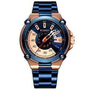 Relógio De Quartzo Masculino Casual Criativo à Prova D´agua Em Aço Inoxidável Azul Dourado