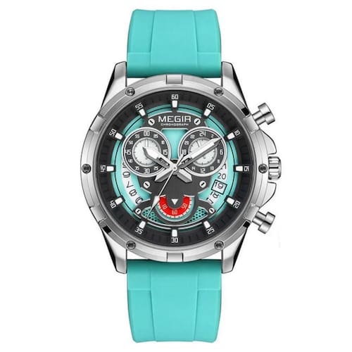 Relógio De Quartzo Masculino Com Pulseira De Silicone Esportivo A Prova D´agua Azul Claro