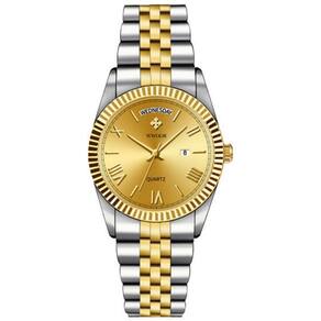 Relógio De Quartzo Masculino Design Casual Em Aço Inoxidavel à Prova D`água 3atm Prata Dourado