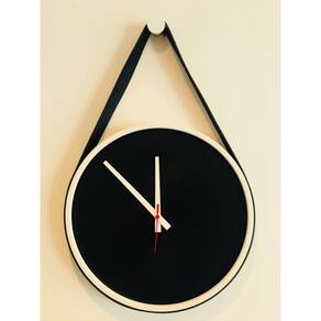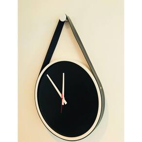 Relógio Decorativo Adnet Branco Alça Corino Preta Mostrador Preto Ponteiro Branco 20cm Redondo Moldura em Alumínio que proporciona leveza ao produto, e permite acabamento em pintura epóxi-pó não enferruja .