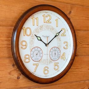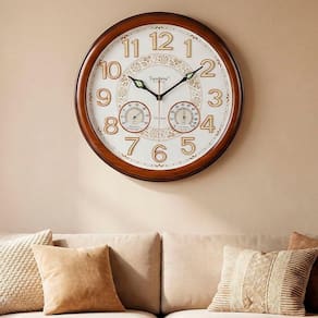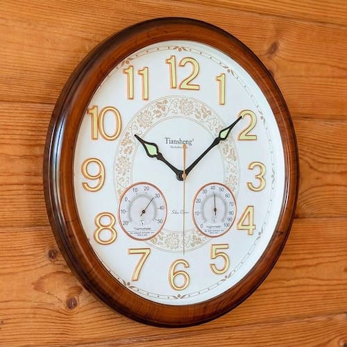Mais do que marcar as horas, este relógio traz funcionalidade e elegância para o seu ambiente, Com termômetro e higrômetro integrados, ele permite acompanhar temperatura e umidade do ar, ajudando no conforto e bem-estar do dia a dia
