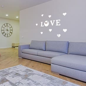 Relógio Decorativo Love Moderno Sala Quarto Acrílico Espelhado Prata