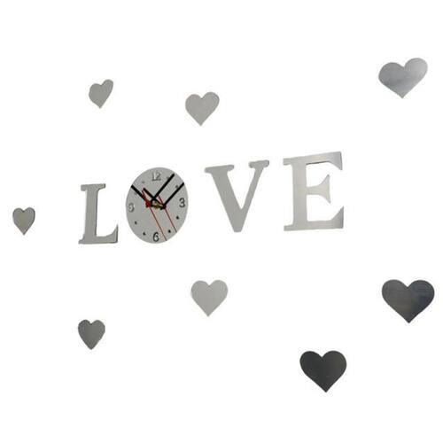 Relógio Decorativo Love Moderno Sala Quarto Acrílico Espelhado Prata