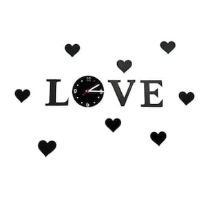 Relógio Decorativo Love Moderno Sala Quarto Espelho Preto