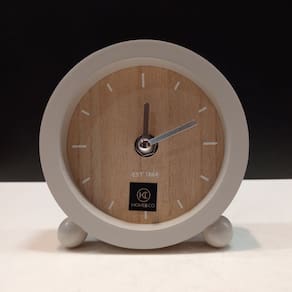 RELÓGIO Altura: 9 cm Largura: 10,9 cm Profundidade: 3 cm Peso: 0,10 Kg Material: MDF Cor: Cinza