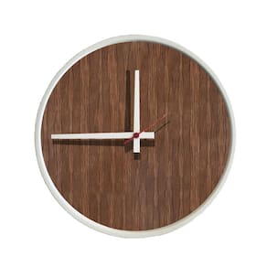 Relogio Decorativo Round Branco Mostrador Pau Ferro Ponteiro Branco 40 cm Diâmetro