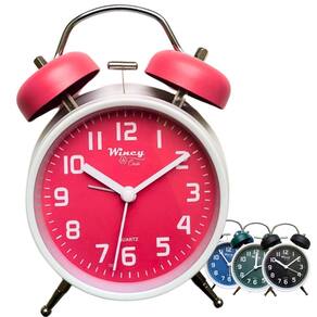 Relógio Despertador 2 Sinos Clássico Wincy Analógico Redondo com Alarme e Luz Noturna PDB01031v - Rosa