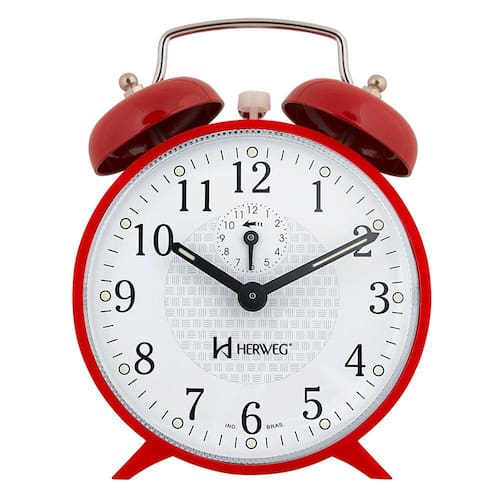 Despertador Mecânico - 2206 Estilo: Clássico Medidas: 14x10x5 cm Características Técnicas: Alarme com som campainha Disponível na linha promocional Funcionamento Mecânico Cores Disponíveis: Vermelho Mais Informações sobre o produto Relógio Despertador Mecânico Base em Plástico injetado Visor de acrílico Ponteiro com massa luminosa Mostrador com massa luminosa Botões de regulagem na parte traseira e na parte superior do produto Detalhes cromados