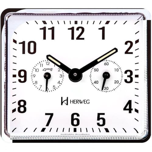 Descrição do Produto: Medidas: 8x9x5 cm Base em Plástico injetado Visor de acrílico Ponteiro com massa luminosa Mostrador com massa luminosa Botões de regulagem na parte traseira e na parte superior do produto Detalhes cromados Alarme com som campainha
