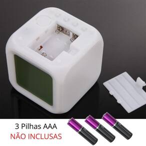 Relógio Despertador Cubo LED Colorido Digital Termômetro Relógio Despertador Cubo LED Colorido Digital com Termômetro é a escolha ideal para quem busca praticidade, funcionalidade e um design moderno que se adapta a qualquer ambiente. Com iluminação em LED que muda automaticamente de cor, ele cria um efeito visual elegante e aconchegante, podendo também ser utilizada como luminária. Essa função é opcional e pode ser desligada conforme sua preferência, garantindo versatilidade no uso diário. Mais do que um simples despertador, este modelo exibe hora, data, dia da semana e temperatura ambiente em ºC ou ºF com alta precisão. A tecnologia digital garante leitura clara no visor LCD, enquanto sua função de alarme e soneca oferece 8 opções de melodias para um despertar personalizado. O formato de exibição pode ser ajustado entre 12h e 24h, atendendo a diferentes perfis de uso. Compacto e funcional, o Relógio Despertador Cubo LED é alimentado por 3 pilhas AAA não inclusas , garantindo mobilidade e podendo ser utilizado em mesas de cabeceira, escritórios, salas ou até mesmo em viagens. Seu design cúbico de 8 cm x 8 cm x 8 cm combina materiais leves e resistentes como plástico e visor LCD, resultando em um produto durável e de fácil transporte. Especificações Técnicas - Nome do desenho: Cubo - Tecnologia: Digital - Conectividade: Não possui - Tipos de alimentação: 3 pilhas AAA - Funções adicionais: Termômetro, hora e data - Materiais: Plástico e visor LCD - Medidas: 8 cm x 8 cm x 8 cm - Conteúdo da embalagem: 1 Relógio Cubo LED Digital Diferenciais - Luz LED colorida com troca automática de cores e opção de desligamento - Exibição de hora, data, semana e temperatura - Função luminária para maior utilidade - Alarme com 8 melodias diferentes e função soneca - Leitura clara e precisa no visor LCD - Ajuste de formato 12h ou 24h Além do design moderno e da ampla funcionalidade, este relógio despertador oferece a confiabilidade de um produto prático para o dia a dia. Seja para manter sua rotina mais organizada ou para compor a decoração do ambiente, ele é uma solução inteligente que une estética e eficiência. Se desejar, posso também criar Títulos otimizados e palavras-chave estratégicas Para aumentar a relevância do anúncio nos marketplaces e potencializar as vendas. Quer que eu prepare essa versão otimizada para SEO Marca: Não Informado Ean: 7891841864844