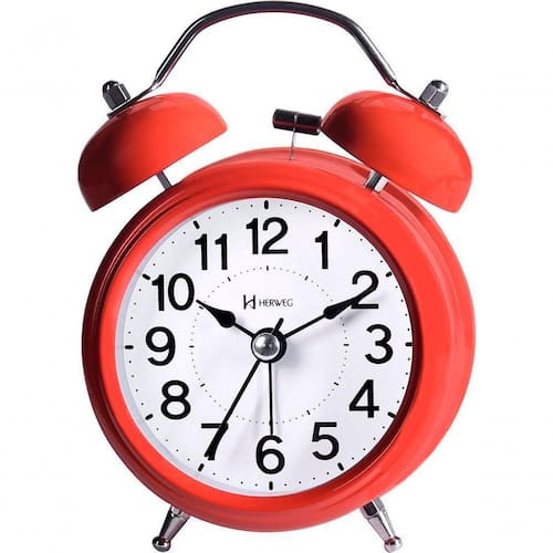 Relógio Despertador Herweg Quartz Vermelho 2707-044 único Relógio Despertador Herweg Quartz Vermelho 2707-044 único - Características Gerais do Produto: Acabamento / funcionalidades: Vermelho Alimentação: Pilha AA ( não inclusa) Funcionalidade: Iluminação Noturna; Mecanismo Step ( Tic Tac ); Quartz; Alarme Sonoro Material: Metal pintado; Visor de Acrílico Medidas: A: 12,5 x L: 8,7 x P: 4,6 cm Observações: Botões de regulagem na parte traseira Modelo referência do produto: 2707-044 Acompanha o produto: 01 Relógio Despertador Eletrônica Garantia de 12 meses do Fabricante Embalagem Manual de Instruções Garantia: 12 Meses de Garantia de