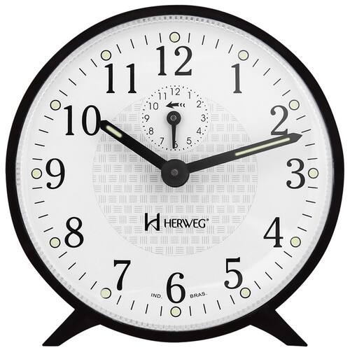 Despertador Mecânico - 2206 Estilo: Clássico Medidas: Altura do relógio: 11 cm Largura do relógio: 11 cm Espessura do relógio: 4,3 cm com botões traseiros 5,0 cm Características Técnicas: Alarme com som campainha Funcionamento Mecânico Cores Disponíveis: Preto Mais Informações sobre o produto Relógio Despertador Mecânico a cordas Base em Plástico injetado Visor de acrílico Ponteiro com massa luminosa Noturna Mostrador com massa luminosa Noturna Botões de regulagem na parte traseira Ean: 7897280300585
