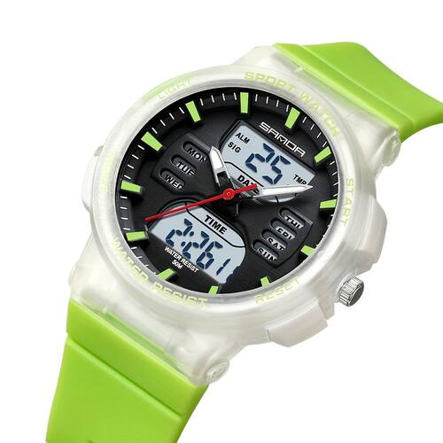 O Relógio Desportivo Unissexo SANDA é uma fusão de estilo e funcionalidade, projetado para aqueles que valorizam tanto a moda quanto a praticidade no seu dia a dia. Com um mostrador azul vibrante decorado com marcadores brancos, este relógio é a companhia perfeita para fitness, caminhadas ou uso casual. Equipado com um cronómetro e iluminação noturna LED, ele oferece precisão e visibilidade em qualquer situação, garantindo que você nunca perca um momento.