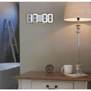 Um relógio elegante e fácil de ler com grande display LED 8888, luzes LED. Desenho de montagem de parede e suporte de parede: um relógio espacial leve e conciso que conveniente para colocar em qualquer lugar