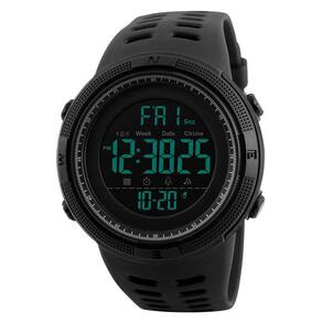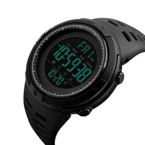 Relógio digital masculino para esportes ao ar livre à prova d'água, cronômetro militar, contagem regressiva, alarme automático de data (SK 1251, todo preto)