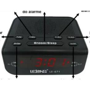 Repetidor de Alarme Nós sabemos que nem sempre conseguimos acordar ao som do primeiro sinal não é mesmo Pensando nisso esse rádio relógio possui a função de repetição do alarme. Agora, quando o alarme tocar e você quiser dormir mais um pouco, basta pressionar uma vez o botão de repetição do alarme e voltar a dormir. Nove minutos depois o alarme volta a tocar.