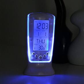 - Relógio digital com calendário, termômetro digital, alarme com música, função de soneca, cronógrafo, contagem regressiva do tempo.