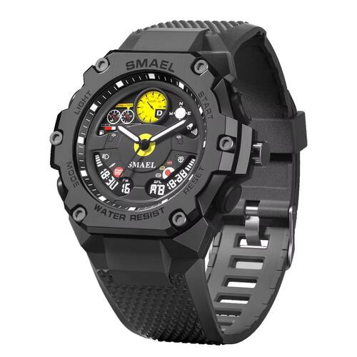Perfeito para estudantes e entusiastas de esportes, este relógio vai além das suas expectativas com funções inovadoras como alarme, calendário e sua impressionante resistência à água. Não apenas luminescente para garantir visibilidade em condições de pouca luz, mas também equipado com um mostrador analógico-digital que oferece uma leitura fácil e precisa a qualquer momento.
