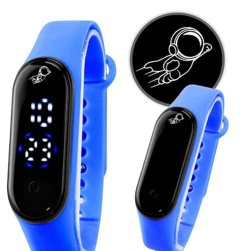 Relogio Digital Infantil Prova Dagua Bracelete Ajustavel Esportivo Azul Silicone Data