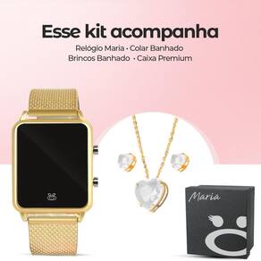 Relogio digital led + caixa + pulseira + colar brinco pulseira ajustável presente casual dourado Relógio Orizom Maria Vidro Cristal Pulseira Silicone Digital Led Gravado à Laser