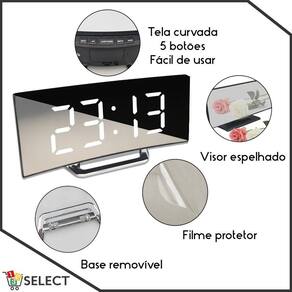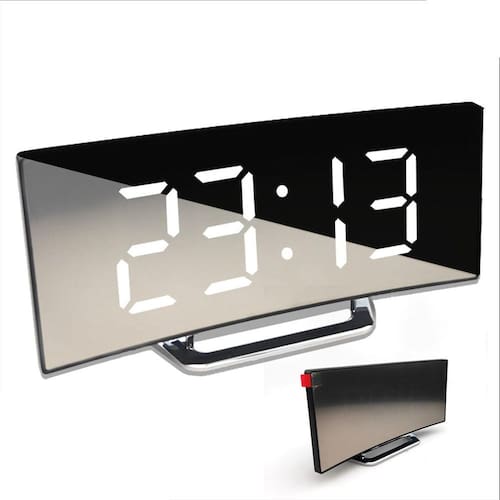 Relógio digital led espelhado curvado temperatura mesa Relógio led digital portátil mesa despertador calendário Led: não só elegante, mas também prático Feito de material plástico abs de alta qualidade, o relógio é leve e elegante; tela led larga e brilhante Design criativo, versatilidade e qualidade confiável Características do produto: Marca: led clockDimensões aprox do produto: a x l x p: 6 x 3 x 16Dimensões aprox com a embalagem: 7 x 4 x 17Peso: 0,164 kg Dois modos de exibição das horas 12 horas / 24 horas.Dois modos de temperatura: graus. C / grau. FFonte de alimentação: cabo usb não acompanha adaptador Despertador Conteúdo da embalagem:1 relógio led digital com despertador1 cabo usb1 manual de instruções O relógio só funciona ligado a uma fonte de energia, a bateria é apenas para manter a configuração em queda de energia As cores do tecido ou desenhos do produto podem variar de acordo com o lote de fabricação. Garantia de 90 dias contra defeito de fabricação. Observações: as cores podem variar entre as imagens mostradas acima e o produto. Imagens meramente ilustrativas. Marca: Mirror Clock