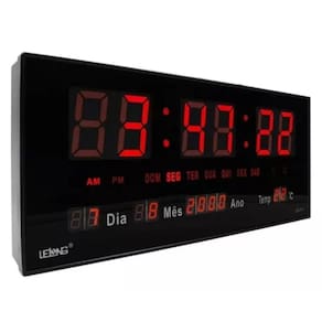 Relógio de parede led digital grande com calendário e alarme é ideal para diversos ambientes como lojas, igrejas, cafés, escritórios, consultórios, academias, residências e comércio em geral. Com visualização a distância e exibição de minutos, ano, mês, data, temperatura e hora, ele é construído em plástico resistente e possui memória interna para manutenção dos dados em caso de interrupção de energia. Além disso, seu design moderno e sistema de ajuste intuitivo proporcionam uma instalação simples e prática.